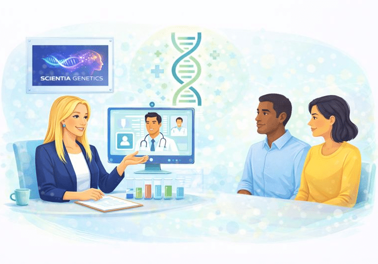 Scientia Genetics partners with healthcare providers to deliver personalized & counseling-first genetic services. We focus on helping patients understand their genetic information in context, considering their personal history, family history, and health goals, so genetic insights support informed care, not confusion.